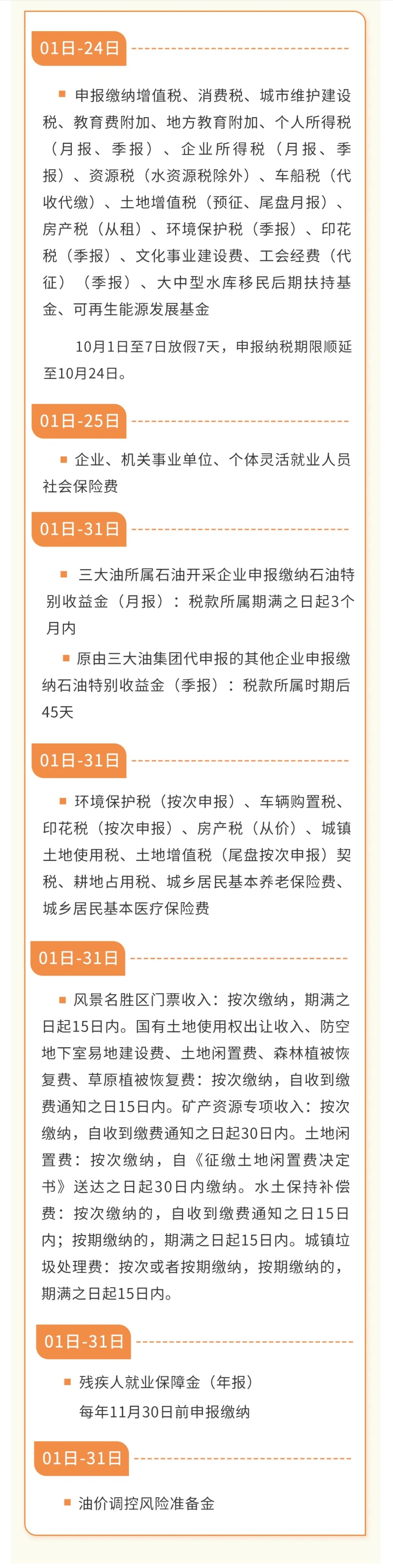 10月征期日历