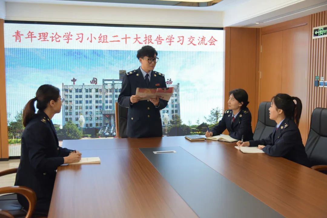 在辽宁,葫芦岛市税务局青年干部围绕学习党的二十大精神进行交流研讨。